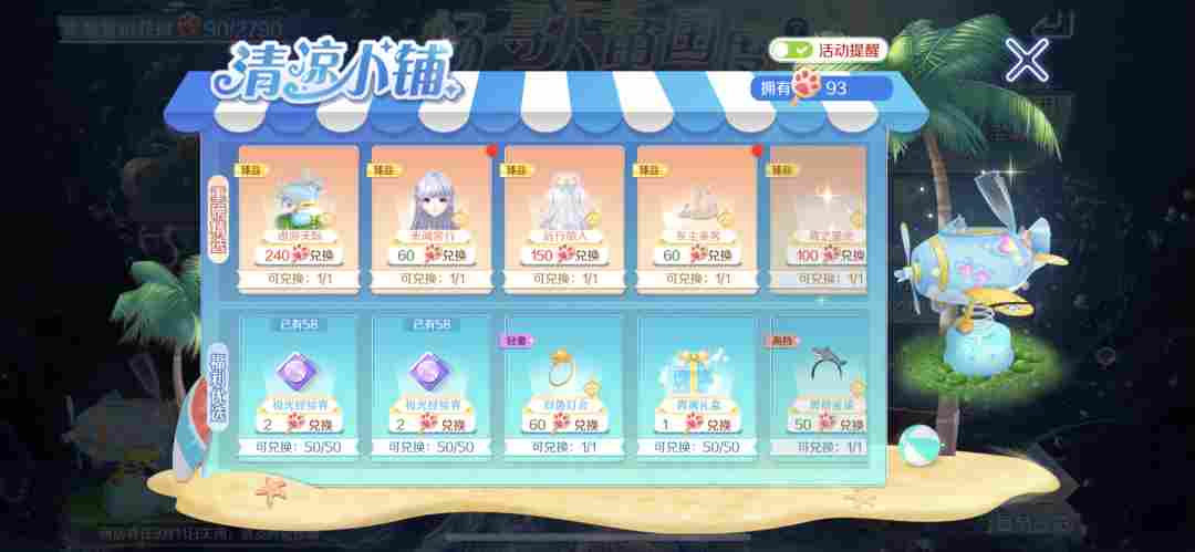 清凉小铺持续营业中!免费臻品双人座椅-遨游天际,轻奢对戒-双鱼灯会,手持-66游泳圈,背饰-夏日冲浪,极光抽奖券*50通通都已经开启免费兑换啦,快去攒猫猫冰棍叭~