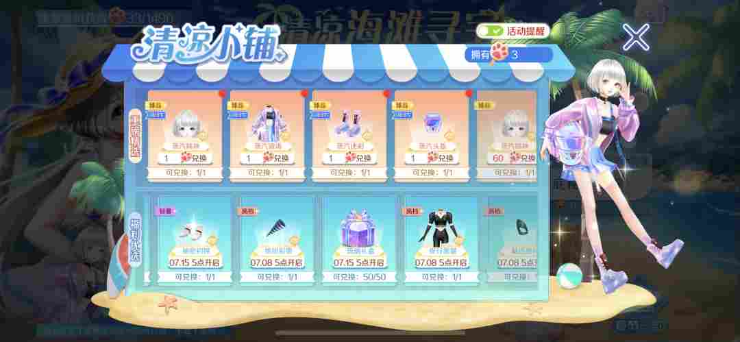 截止至7月17日,参与【赶海拾珠】活动完成任务获得【猫猫冰棍】道具即可前往清凉小铺兑换好物!更有专属头像框-海沫梦珠可免费领取~