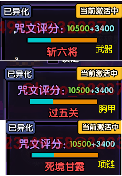 新水战士的咒文选择:武器用斩六将,胸甲用过五关,项链用死境甘露