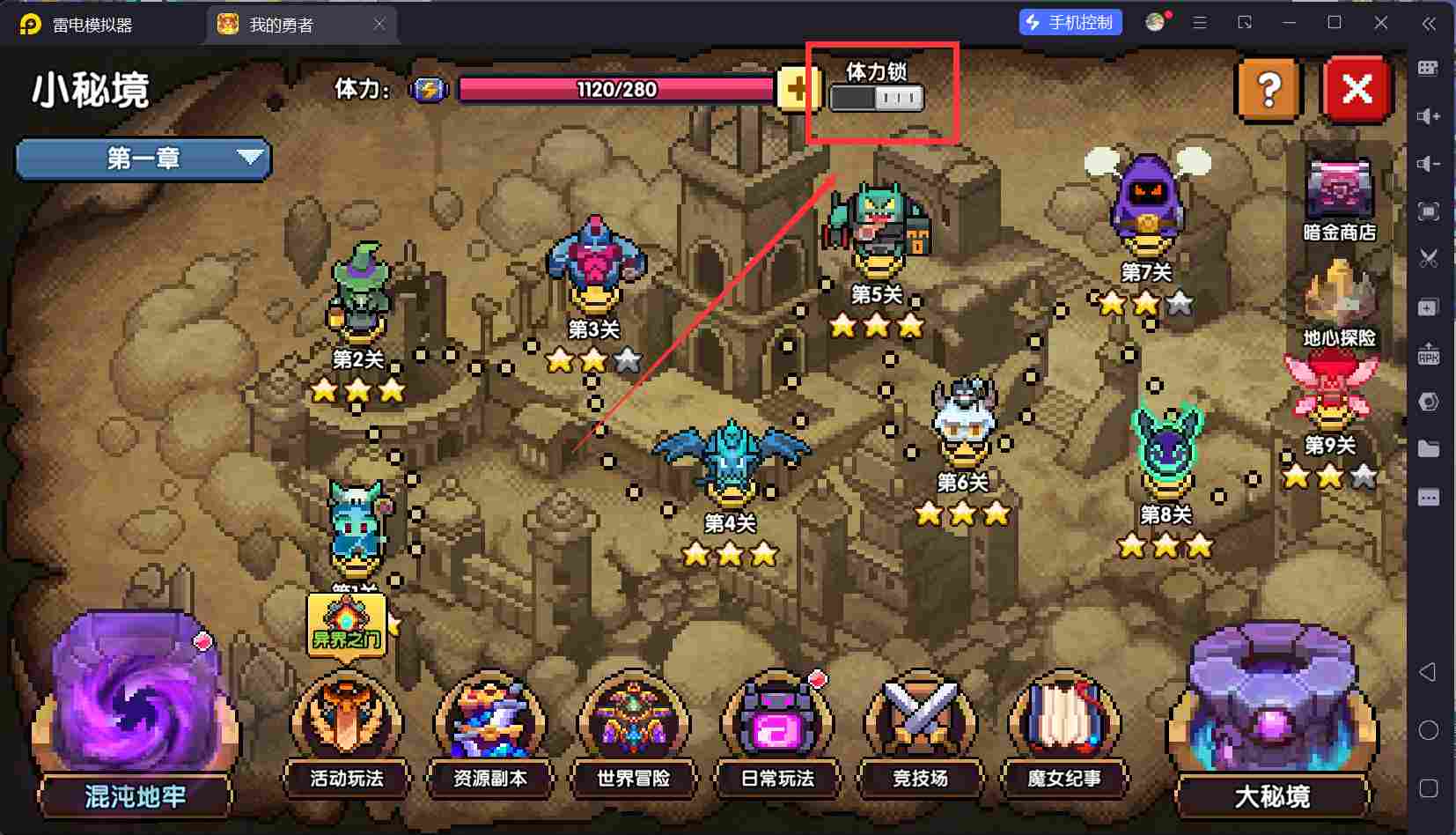 开启体力锁之后,继续推图