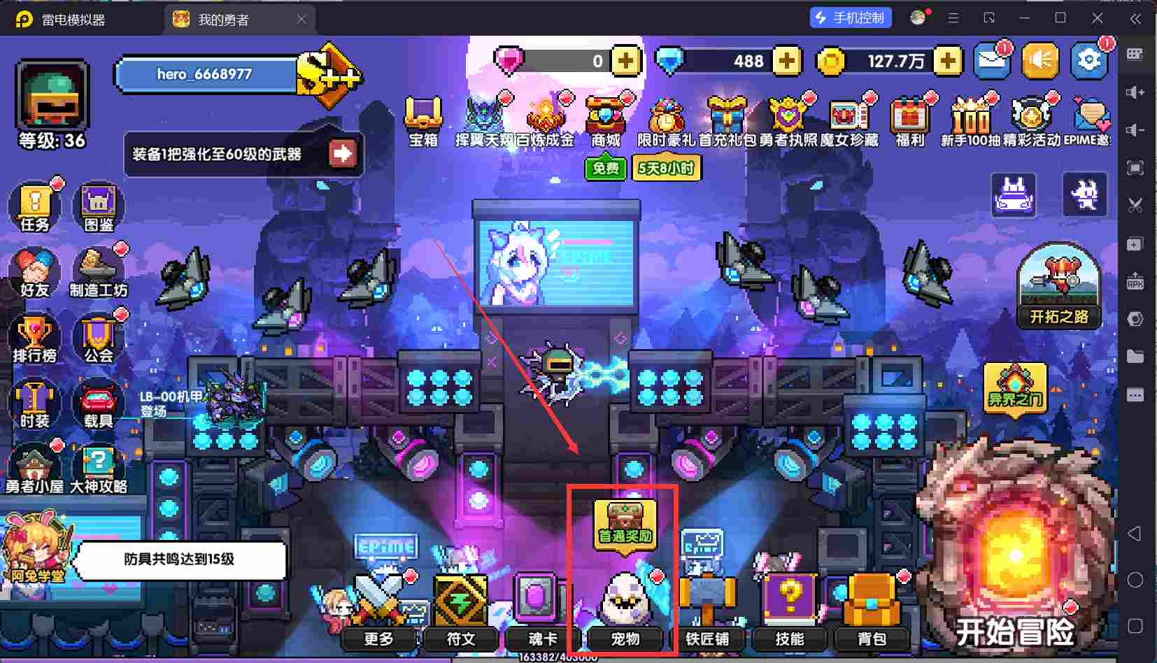 我们先给奥义位的宠物升级