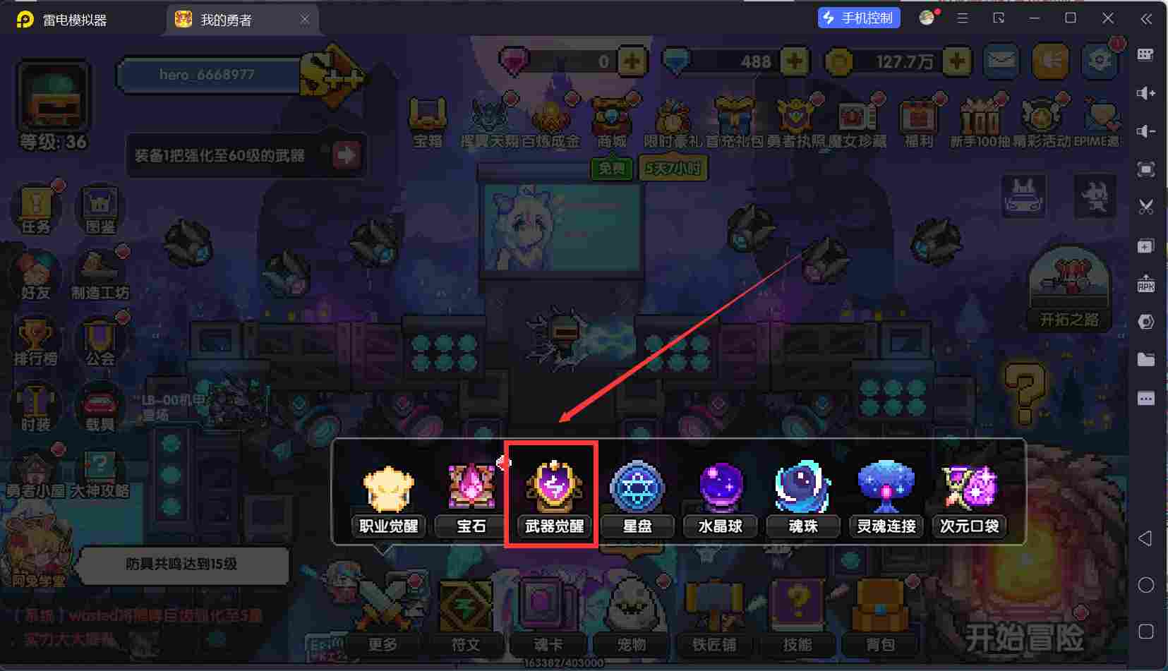 回到主城,然后我们打开体力锁