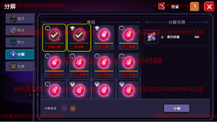 不需要的咒文可以分解为原石碎屑,原石碎屑可以在商店兑换一些养成道具。