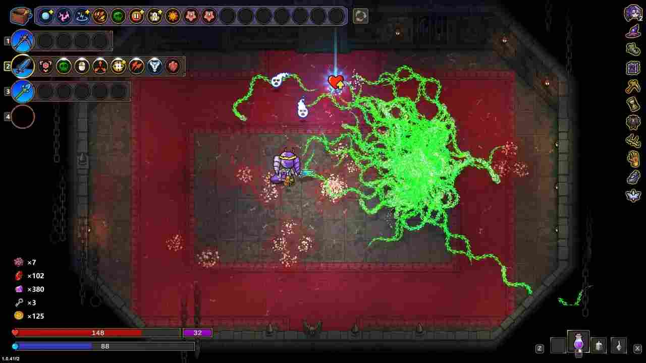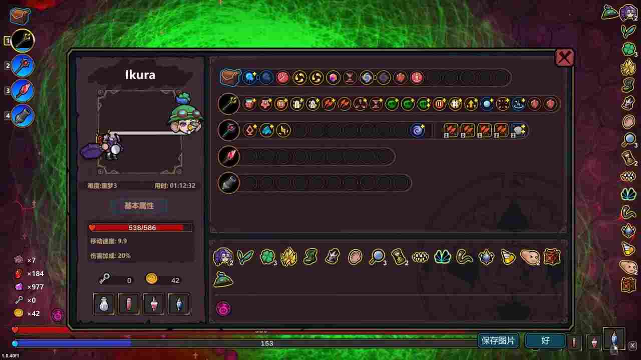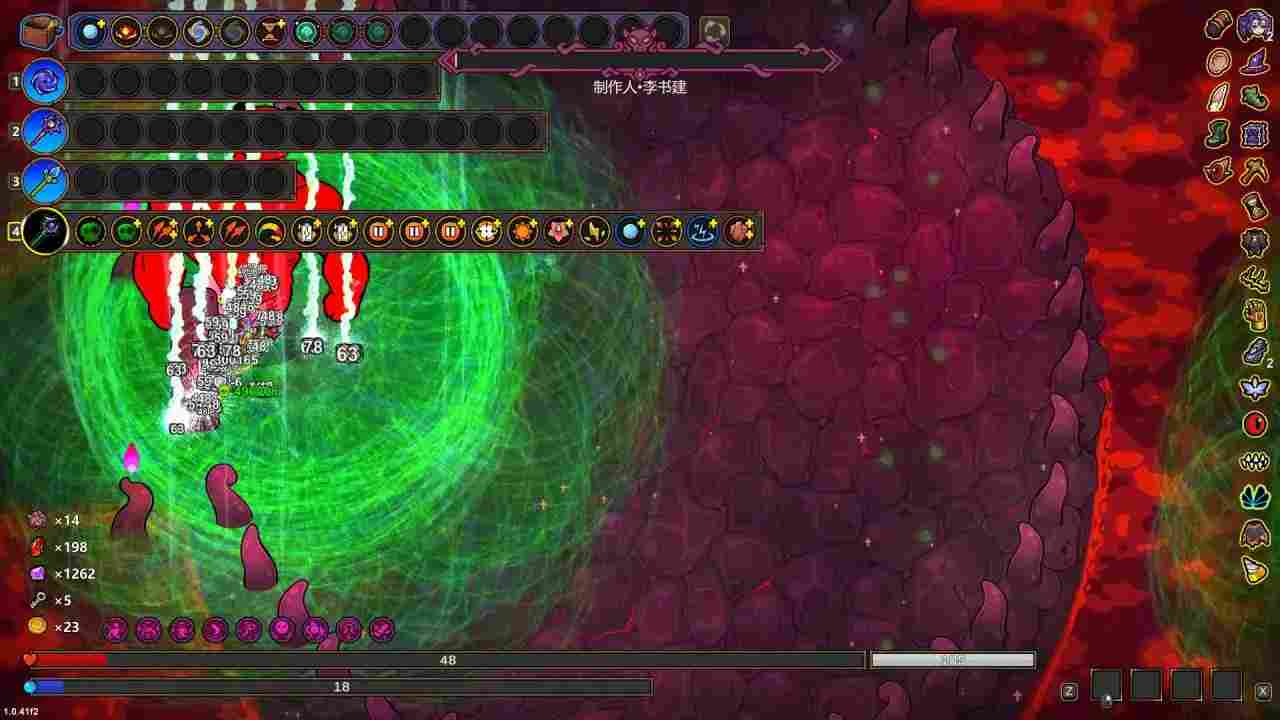 图2触手娘法术激活中的第一行3和4里的 扩容石 和 绚丽烟火 都必不可少,第二行4里的 审判之剑 前期打工也很好用,别的行可点可不点,点了反而有点污染库
