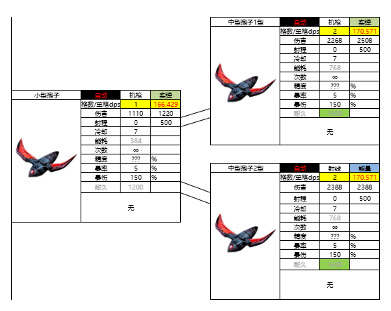 3.本帖内容中的武器均按伤害类型排序。比如先分实弹,能量,爆炸,3个大类,然后大类底下再细分机枪还是导弹什么的。