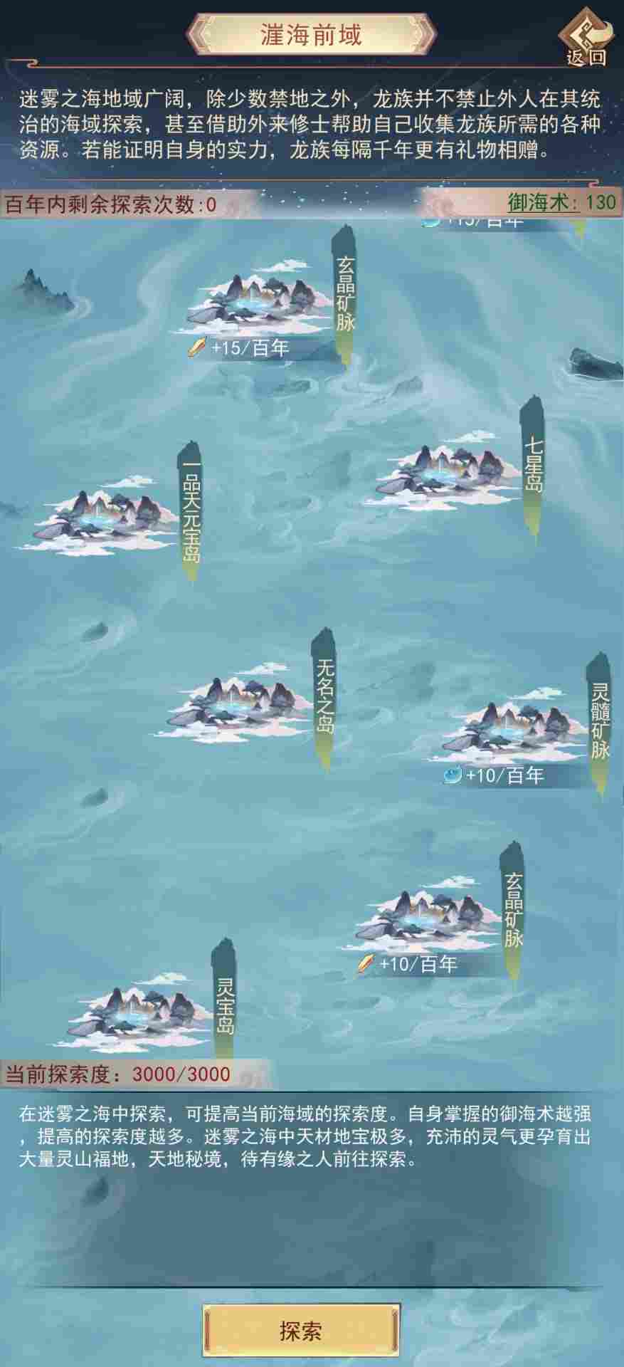每次探索时可能给龙元草/龙珠,龙元草先兑换1本御海诀,升满再兑换下1本,以此类推。