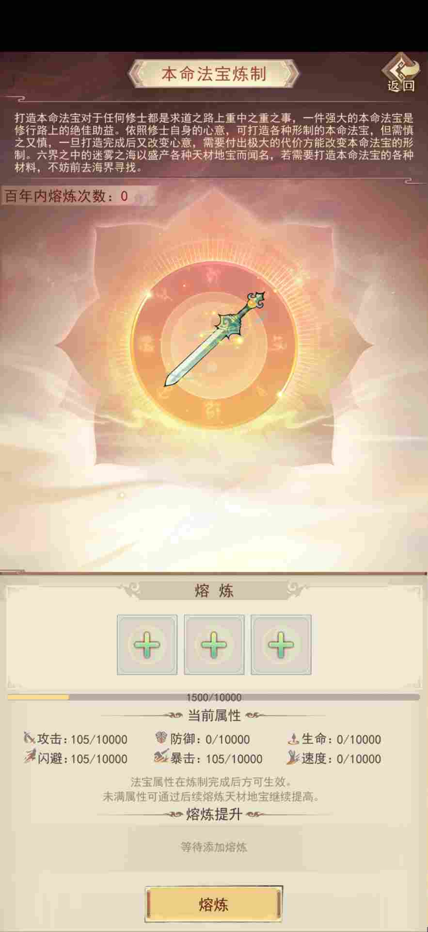 探索灵宝岛剩下的材料可以继续熔炼提高本命属性。